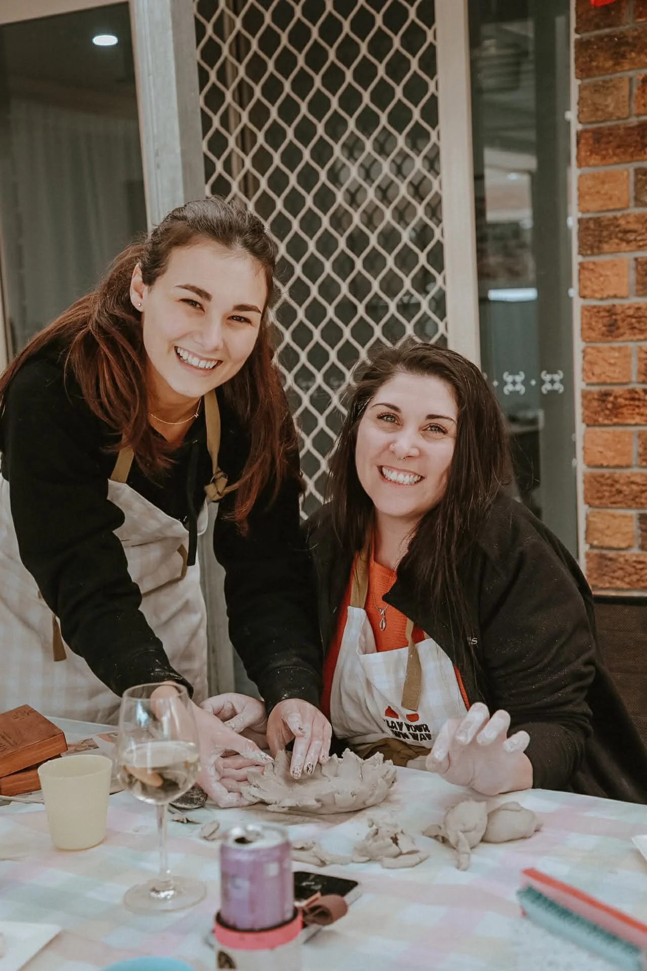 Sip, sculpt, eat, repeat. Got a function coming up like a Birthday, Baby Shower, Bachelorette, or Just want to mix it up with some friends! Book a clay and sip hand-building class where we come to you!